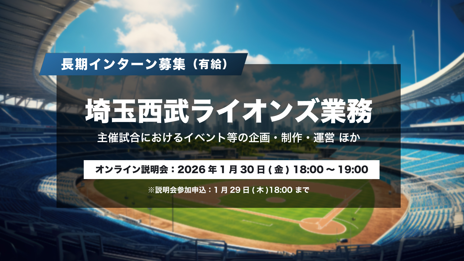 2025-12-13 【お知らせ】2026年 株式会社ジョインハンズスポーツ(埼玉西武ライオンズ業務) インターンシップ募集のお知らせ